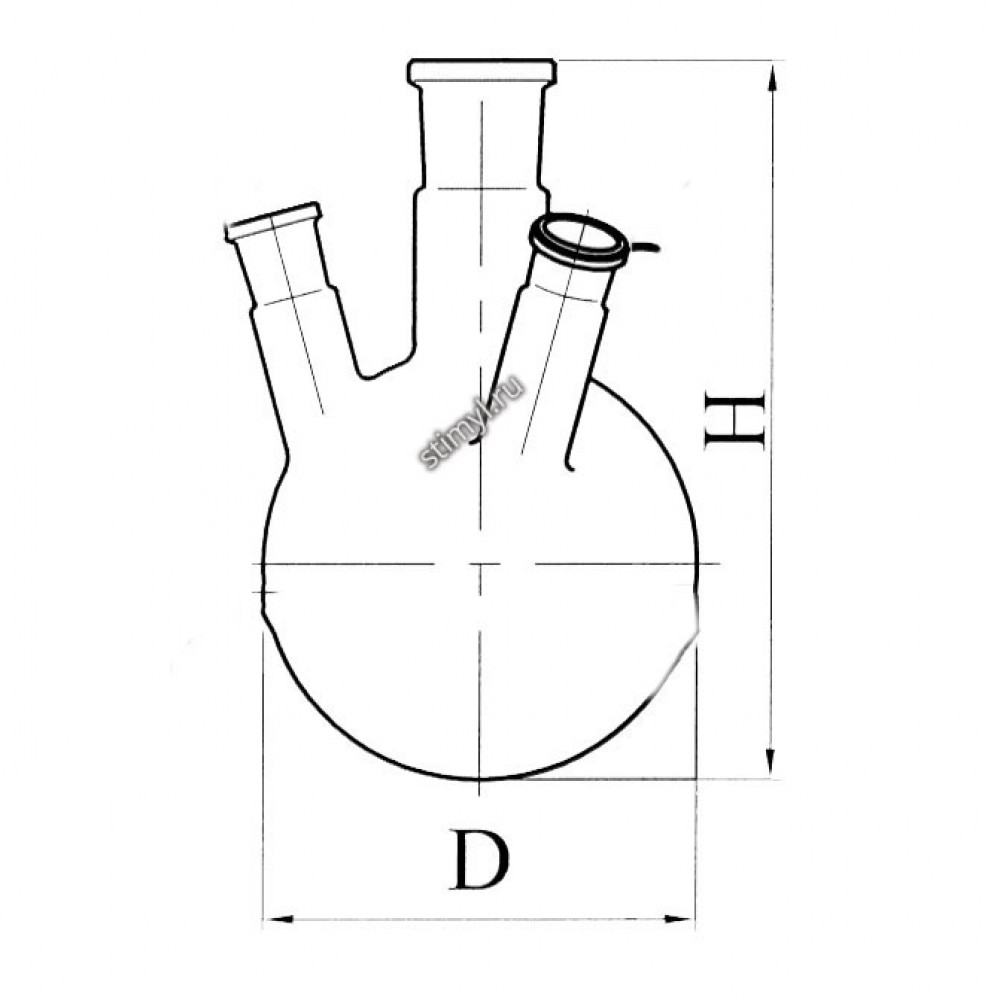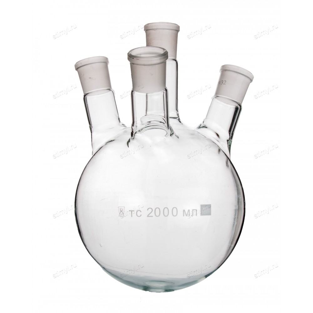 Колба КГУ-4 круглодонная с 4-мя горловинами под углом с шлифами применяется при проведении различных синтезов, требующих применения термометра, холодильника, мешалки, воронки и т.д. Изготовляются из стекла ТС ГОСТ 21400-75 и Симакс ЧСН ИСО 3585.