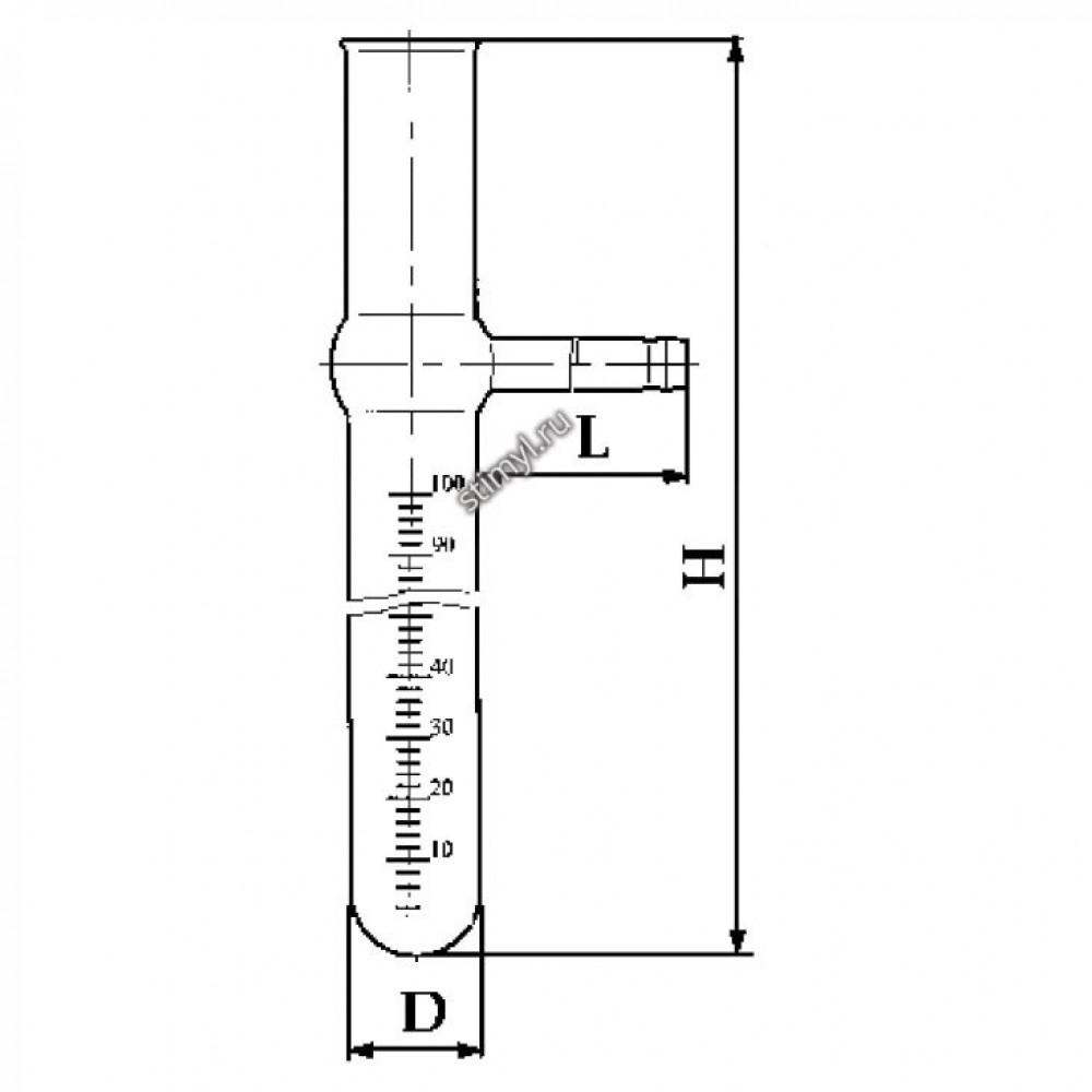 | Шифр | Номинальная вместим. мл | Цена делен. шкалы, мл | Допускаемая погрешн., мл | D мм | H мм | L мм |