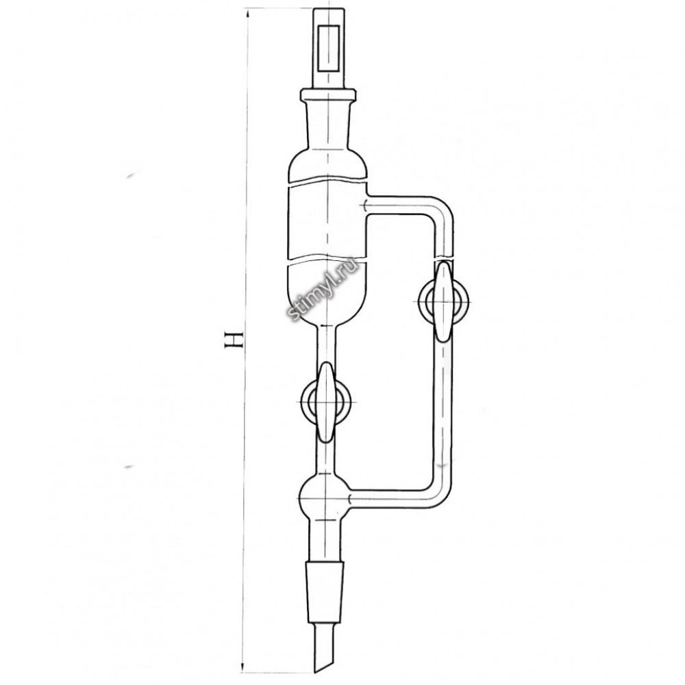 Шифр Вместимость мл Н мм Шлиф КШ по ГОСТ 8682-93 Тип кранов