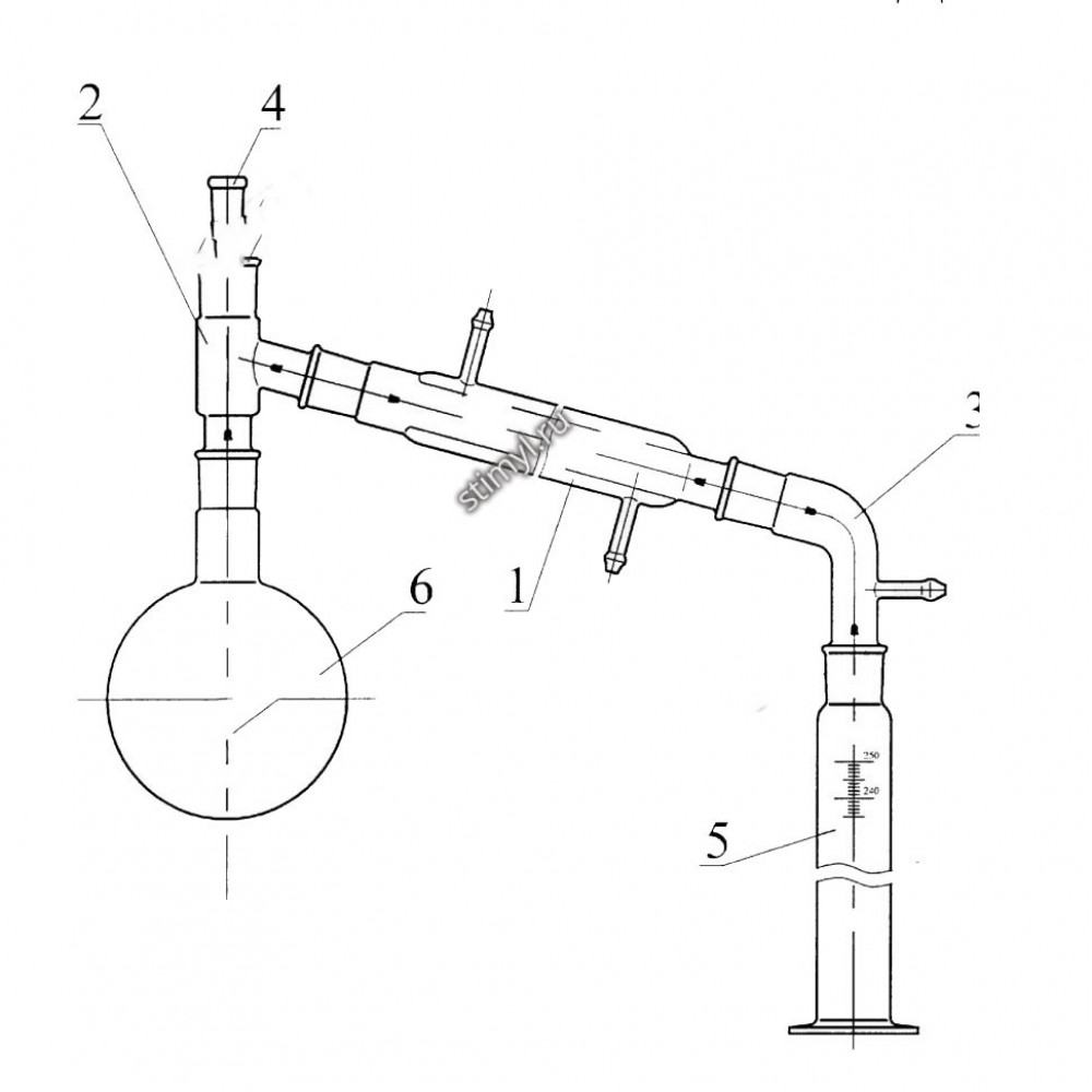 Комплект стеклоизделий к прибору для перегонки. Комплект стеклоизделий к прибору для перегонки состоит из:
