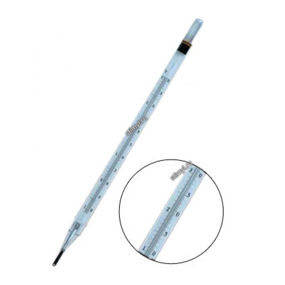 Термометр ТМ-10 метеорологический почвенно-глубинный для измерение температуры глубинных слоев почвы и поверхностного слоя воды водоемов. Термометр метеорологический почвенно-глубинный.Ртутный термометр для измерение температуры глубинных слоев почвы и поверхностного слоя воды водоемов.Изготавливается по ГОСТ 112-78.Внесен в Государственный реестр средств измерений и имеет сертификат "об утверждении типа средств измерений".КонструкцияСтеклянный термометр с вложенной шкальной пластиной из листового стекла молочного цвета.