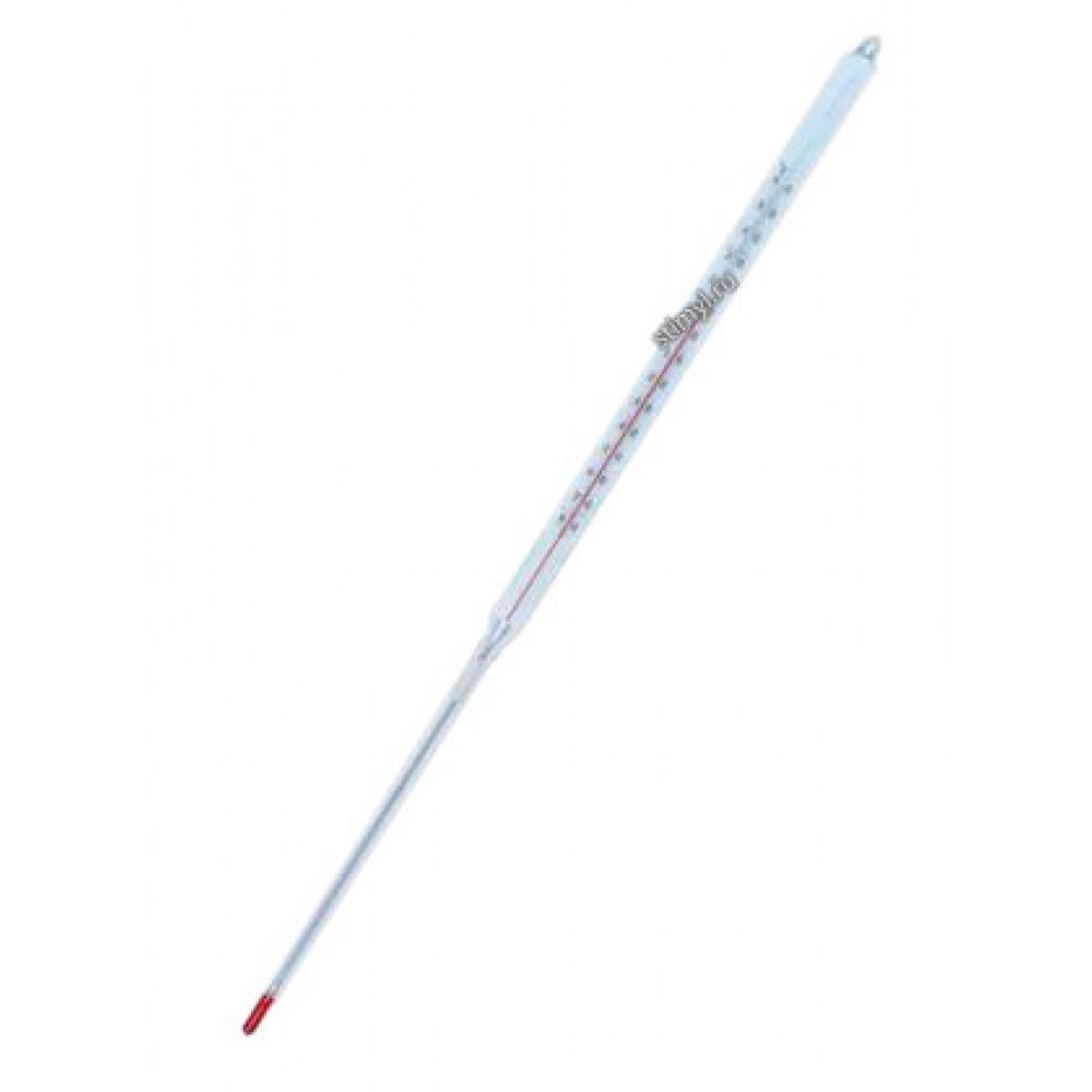 Термометр ТН-8 для испытания нефтепродуктов. Стеклянный термометр с вложенной шкальной пластиной из молочного стекла. ТН-8М — термометр стеклянный жидкостный не ртутный с вложенной шкальной пластиной из стекла молочного цвета.Термометр неполного погружения. При измерении температуры погружается в измеряемую среду нижней частью на глубину 160 мм.Предназначен для измерения низких температур при испытании нефтепродуктов на застывание.Конструкция Длина: